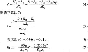 式(7)即为PCB板非标准化传感器配标准化信号调理电路的校正算法。只要预知非标准化传感器的零点R01和灵敏度α1,将上述算法编制程序作为系统应用软件的子程序,计算机即可根据IPC5457的测得值计算出被测温度,达到了采用成熟的、商品化的标准化热电阻输入板采集非标准化热电阻输出信号的目的,简化了系统硬件,相应提高了系统的可靠性和稳定性。