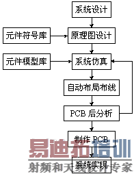 仿真通过后,根据原理图产生的电气连接网络表进行PCB板的自动布局布线。在制作PCB板之前还可以进行后分析,包括热分析、噪声及窜扰分析、电磁兼容分析、可靠性分析等,并且可以将分析后的结果参数反标回电路图,进行第二次仿真,也称为后仿真,这一次仿真主要是检验PCB板在实际工作环境中的可行性。