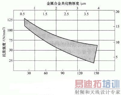 金属合金层(n相+ε相)必须非常薄,激光焊接中,金属合金层厚度的数量级为0.1mm ,波峰焊与手工烙铁焊中,优良焊接点的金属间键的厚度多数超过0.5μm 。由于焊接点的切变强度随着金属合金层厚度的增加而减小,故常常试着将金属合金层的厚度保持在1μm 以下,这可以通过使焊接的时间尽可能的短来实现。