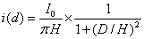 式中i(d)是信号电流密度,I0是总体电流,H是走线距地层的高度,D是距走线中心线的距离。