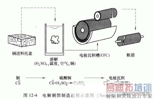 电解过程开始是将铜从硫酸溶液中分解出来,通过温度和搅动来控制分解率。铜箔的外形和力学性能可能过使用不同类型的添加剂加以控制。