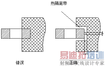 5.50 SMD器件的引脚与大面积筒箔连接时,要进行热隔离处理,如下图: