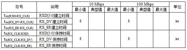 MII接口是最常用的百兆以太网PHY芯片与MAC间的接口,表1和表2分别是某百兆PHY芯片和某MPU内部MAC的RX通道时序参数表。