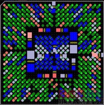 图6:这种扇出方法避免了使用高端技术,而且不会影响信号完整性。BGA引脚分成内部引脚和外部引脚两部分。