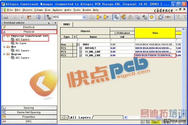 高速PCB设计的约束管理器中