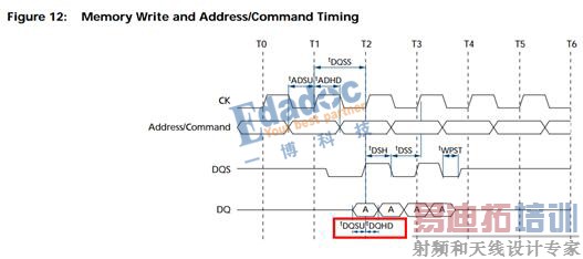 颗粒端为美光DDR,该芯片的时序图以及时序参数如下图所示,这张图片则定义了颗粒端芯片识别信号所需要的建立时间与保持时间。