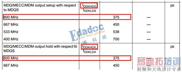 下面我们通过具体实例来看看时序的计算,下图是Freescale MPC8572 DDR主控芯片手册,这张图片定义了从芯片出来的时候,DQS与DQ之间的相位关系。