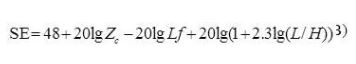 在近场区,孔洞的泄露还与辐射源是磁场源有关。当辐射源是电场源时,孔洞的泄露比远场小(屏蔽效能高);而当辐射源是磁场源时,孔洞的泄露比远场大(屏蔽效能低)。对于不同电路阻抗Zc的辐射源,计算公式如下: