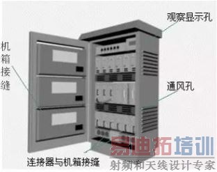根据小孔耦合理论,决定孔缝泄漏量的因素主要有两个:孔缝面积和孔缝最大线度尺寸。两者皆大,则泄漏最为严重;面积小而最大线度尺寸大则电磁泄漏仍然较大。如图所示为一典型机柜示意图,上面的孔缝主要分为四类: