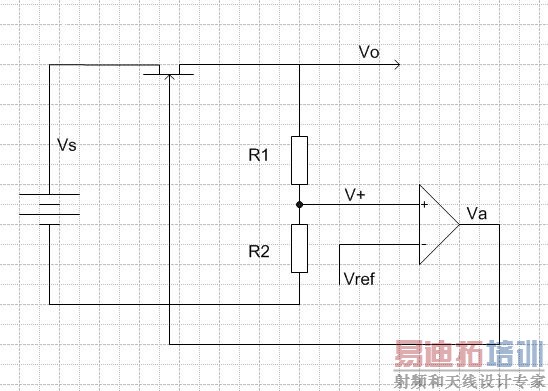 现在我们来看Vo是怎么稳定的,假设Vo变小,那么V+将变小,放大器的输出Va也将变小,这将导致MOSFET的阻抗变小,这样经过同样的电流,MOSFET的压差将变小,于是将Vo上抬来抑制Vo的变小。同理,Vo变大,V+变大,Va变大,MOSFET的阻抗变大,经过同样的电流,MOSFET的压差变大,于是抑制Vo变大。