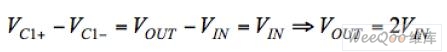 在第二个阶段,开关S3和S4关闭,而S1和S2打开。因为电容两端的电压降不能立即改变,输出电压突变到输入电压值的两倍︰