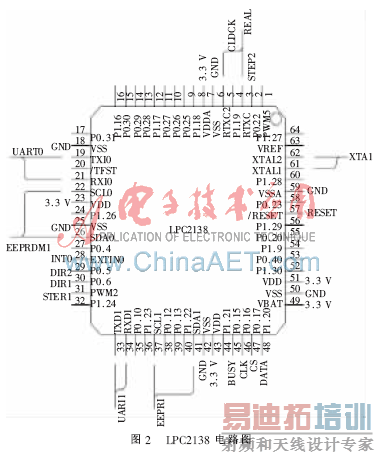 LPC2138电路图如图2所示,主要实现以下功能: