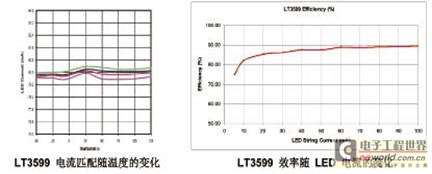 图 3 图2中LT3599的LED电流匹配和效率