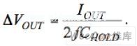 在第二阶段,C1 +连接到输出,放电电流(电流大小与前面的充电电流相同)通过C1流到负载。在这个阶段,输出电容电流的变化大约为2 IOUT。尽管这个电流变化应该能产生一个输出电压变化为2 IOUT ESRC_HOLD,使用低ESR的陶瓷电容使得这种变化可以忽略不计。此时,CHOLD按下面的电量线性电位充电︰