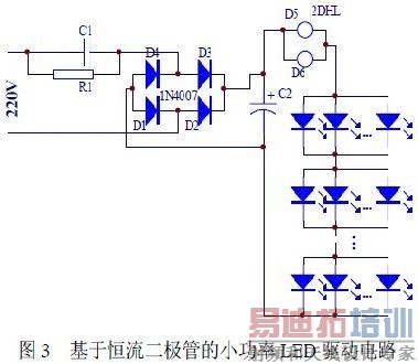 基于恒流二极管的市电供电小功率LED 驱动电路如图3 所示: