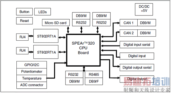 ST公司的SPEAr320是具有ARM926内核的嵌入MPU,最适合用于工厂自动化和消费类电子产品.功能强大的ARM926EJ-S处理器工作频率高达333MHz,具有高性能的8路DMA,32KB ROM和8KB SRAM,LPDDR-333/DDR2-666 外接存储器接口,SDIO/MMC 卡接口以及串行闪存接口(SMI),外设支持TFT/STN LCD控制器,各种功能的触摸屏,支持1Msps的8路10位ADC和4xPWM定时器.主要用在可编程逻辑控制器,工厂自动化和打印机.而EVALSPEAr320PLC评估板包括CPU板和MII模式应用板.本文介绍了CPU板和MII模式应用板主要特性,方框图,布局图以及MII模式应用板的详细电路图.