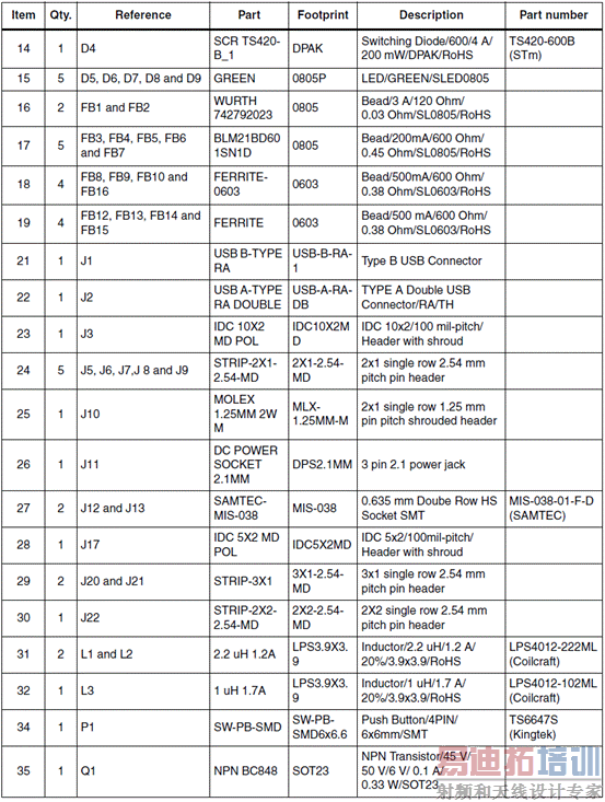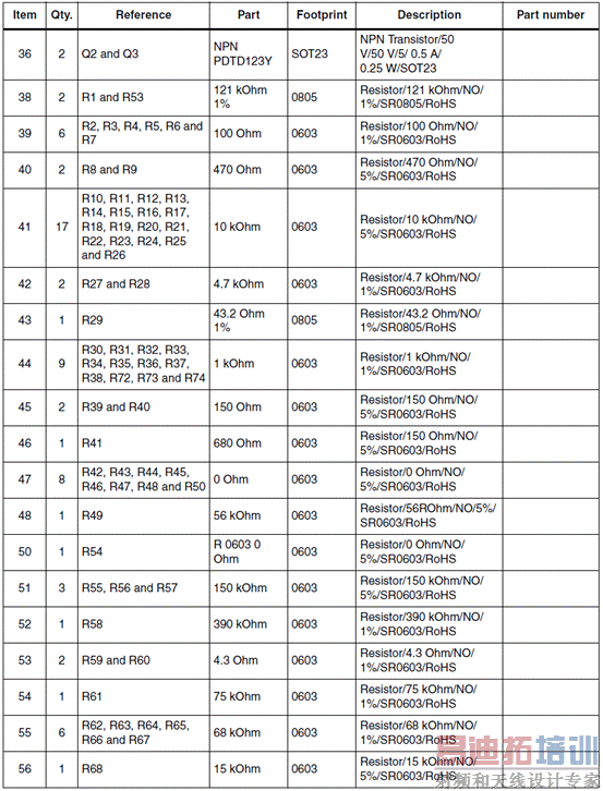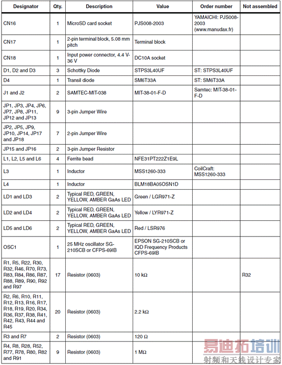 MII应用板材料清单(BOM):