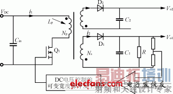 图3 带 反 馈 稳 压 电 路 的 变 换 器 [p] 功率管Q1所承受的最大电压应力的计算: