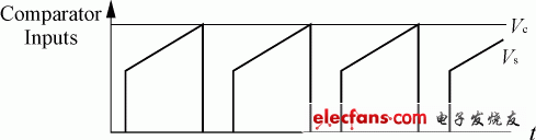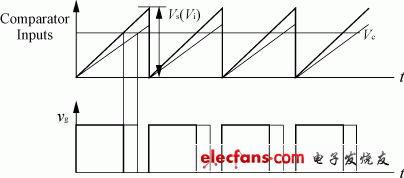 它很类似于占空比控制,但有一点不同的是现在的锯齿波电压幅值VS是正比于输入电压Vi的,如图7所示。