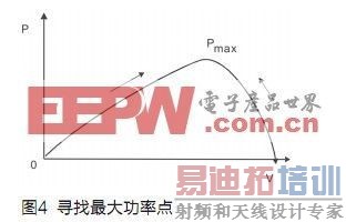 MPPT程序模块流程如图5所示。在初始化后,通过电流和电压的采样测量,可获得光伏电池的输出功率,在输出电压稳定的状态下,通过电流占空比的微调DD,使光伏电池的输出电流有微量变化DI,再检测光伏电池的输出功率的变化,在设定的算法和当时的环境变量情况下,判断DP的变化方向,再来决定下一阶段的占空比的变化方向,见图4。如果功率的变化小于了设定的微小量ε,则判定找到了最大输出功率点,只有到下一工作状态时,才继续寻找新的最大输出功率工作点。
