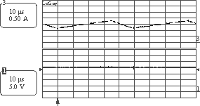 1-输出电压波形(5V/div) 3-电感电流波形(0.5A/div)