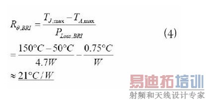 如果我们假设一个绝对的最高结温度TJ 为150℃,最高室温为50℃,然後BR1 散热器的热大热阻(与空气之间)应为