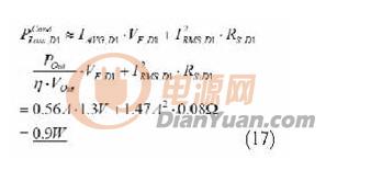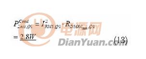 经过一番计算,选择了一个最大RDSon约为0.45Ω@100℃的SuperFetTM FCP16N60。Q1 的总功耗分成传导功耗和开关功耗。传导功耗如下∶