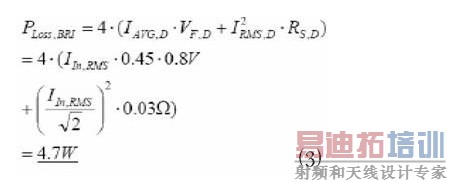 整流器功耗是可以预计的,通过一个恒定正向电压下已知的近似二极管正向特性乘以一个串联电阻。正向电压VF 和串联电阻Rs 必须从规格说明书中查,对於GBU6K 分别是0.8V和0.03Ω。功耗方程变成∶
