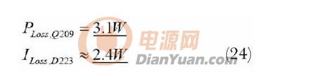 这里给出了一个功耗上限值。在实际中,励磁电感的谐振和节电输出电容使电压降低到400V以下,Q206的功耗当然是完全相同的。每一个MOSFET需要一个最大热阻为20℃/W的散热器。