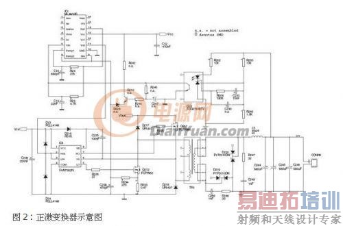 由於肖特基二极管的快速开关,寄生振荡激烈,必须采用RC 网络R246/C250和R247/C249 抑制。虽然在文献中有很多如何确定这些网络值的等式,经验显示计算值仅仅是实验优化的一个初值。原则上,使用相容在一个FYP2010中的两个二极管是可能的,但在这种情况下,每个封装的功耗加倍了,散热复杂了。另一个用两个二极管代替一个的理由是,即自驱动同步整流器(未列出)准备的PCB 需要两个单独二极管。