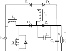 图2为文献[8]提出的一种无源再生式的软开关Boost变换器,它是传统的 L +RCD复合型缓冲电路的改进。其改进点包括: