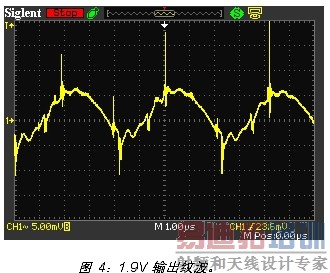 以下各图可以让大家对纹波的相貌大概有个感性认识。被测 DC/DC 模块 输出3.3V与1.9V两路电压。