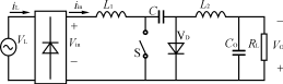图5为所提出的VF睵FCCukDC/DC变换器电路,图中LF,CF组成高频滤波网络,由于开关频率远大于输入交流电压频率,可以假设在一个开关周期TS内,输入电压保持不变。