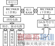 频率控制码:K=fo*224/fclk(fo,fclk分别为D/A输出和计算机时钟的频率)每累加一次,将相位累加器的低8位舍去后作为相位地址传给下位机,下位机再依此地址在64k(216)EEPROM中取数送D/A输出。当相位累加器的第8位没有发生变化(进位加1),则仍保持上一次的地址值输出(相当于四舍五入),而下位机也仍然取同一地址中的值输出。通过四舍五入的办法用最近的点代替实际输出,精度上能符合要求,且大大简化了程序,并且用较小的存储空间实现了高精度的波形合成,将输出分辨率提高到fmin=