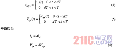 若对(6)式进行小信号扰动分析即得V模型。更精确的,将扰动产生的响应分为基波和高次谐波,用谐波平衡原理,则得出T模型。因而,V模型是T模型的特例。两者的区别在于:前者是平均法,后者本质上是谐波平衡法;前者在时域中处理,后者在频域中处理;前者是一线性模型,且模型比较简单,适用于小信号分析,并可分析一些寄生效应;后者是一非线性模型,可用于大信号分析,并可用于波形失真的估计,它的一阶近似就是V模型。但T模型只可以考虑单频率的扰动,不能分析多频扰动,而且不能用于可能产生谐波的变换器的分析[20,26]。