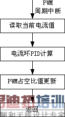 各控制环的核心服务子程序的流程如图 5-2所示。这几部分是整个系统的核心,其性能也决定了整个驱动器的性能。因此,这几部分使用纯汇编编写,相应的PID算法也根据不同控制环的特点进行相应的结构调整和性能优化。以最大限度保证这几部分程序的性能和实时性。
