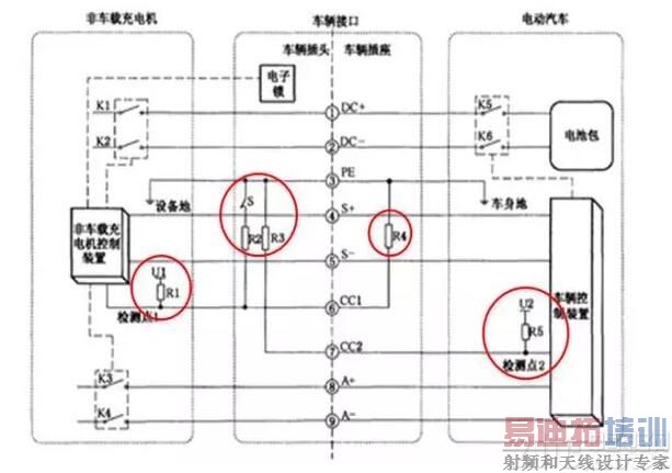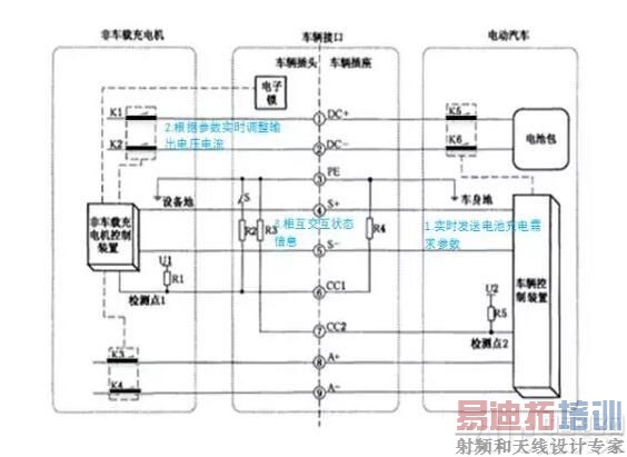 直流充电桩就是通过这9根线给电动汽车进行充电,其具体的充电模型如下: