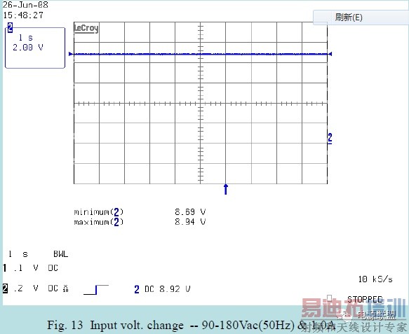 测试S.M.P.S. POWER ON时,输出DC OUTPUT过冲幅度变化量(常规定义为≤10%).