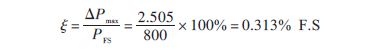 实验数据表明,压力传感器建立高阶温度补偿模型可以实现其零点漂移和灵敏度漂移的统一补偿,补偿后传感器输出值与标准值最大误差为: