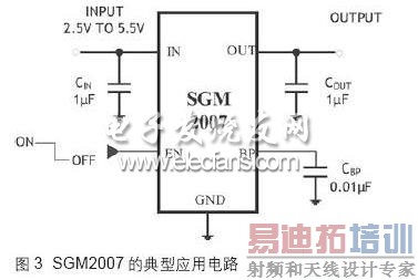 电源抑制比 (PSRR,Power supply ripple rejection ratio)是反应LDO输出对输入纹波抑制能力的一个交流参数,一般输出和输入的频率是一样的,PSRR的值越大说明LDO的纹波能力越强,也就是说输入对输出的影响很小。尽管LDO的电源抑制比很强,但都是在一定频率内的抑制很强,一般的在50KHz到200kHz的电源抑制比还是很差的如图4为SGM2007的PSRR和频率曲线,而这段频率正是大多数开关电源的工作频率,如果LDO的负载和输入输出电容匹配不好,很容易引起LDO振荡。而造成整个LDO供电系统的不稳定。