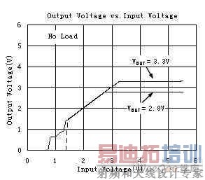 由此得出低压差线性稳压器(LDO)的一个重要特性,在输入电压大于最小工作电压和输出电压其标称值范围内,负载电流为零时,输出电压随输入电压的变化而变化,这就是LDO的跟随特性,待输出电压达到其标称值后不随输入而变化,从而达到稳压的目的,这就是LDO的稳压特性。如图为圣邦微电子的SGM2007输入电压和输出电压的曲线。