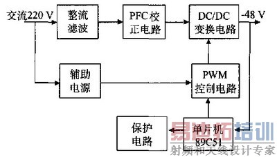 市电经整流滤波和功率因数校正后得到高压直流电,然后通过DC/DC变换电路得到所需要的直流电压。控制回路从输出端取样并与设定基准进行比较,然后去控制逆变器,改变功率开关管的导通频率或导通/截止时间进行输出稳定;另一方面,根据检测电路提供的数据,经保护电路鉴别,利用控制电路对整机进行各种保护和蓄电池的充放电控制。控制电路是整个开关电源的核心部分,一般开关电源的控制电路主要有检测比较放大电路、电压—脉冲宽度转换电路(或电压—频率转化电路)、时钟振荡器(或恒脉宽发生器)、基极驱动电路、过压过流保护电路以及辅助电源等电路组成。存在着电路复杂,功耗大,灵敏度差,不能实现很好的控制等缺点。