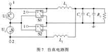 图7所示为共阳极二极管接法的拓扑电路仿真电路图;图8,9分别为正常与不正常条件下的仿真波形。在图7中,用 U1和U2分别来产生正负方向的电压脉冲,其幅值为6V,占空比为80%,用压控开关S1和S2来代替二极管D1和D2,它们分别受U 2和U1的控制,负载为一纯电感 R1。在不考虑实际二极管的反向恢复特性的情况下,该电路与图1所示电路是完全等效的。图8,9所示的仿真波形与实际相比,只是少了在电压突变时的二极管反向恢复尖峰,因此该电路的仿真结果具有很大的参考价值。