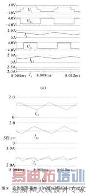 ② 图4的波形中要保证L1及L 2中的电流始终为正值,要有足够大的电感值以保证电感纹波电流起伏波动值不大;要保证两个滤波电感中的电流均等变化。