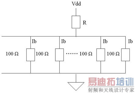 若Vdd=2.5V,R可以为100Ω,提供220mV的差模电压,计算公式如下;一组有10个正端子的网络有10个并联电阻,其等效阻抗为100Ω。因此总电流为: