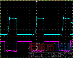 图 4、5分别为工作在CCM、DCM下的同步工作波形,其中浅绿色为同步MOS的Vds波形,紫色为SP6018/SP6019输出波形。因为具有死区编程控制功能,能保证电源安全地工作在CCM模式,这也是业界唯一能出色应对连续模式的同步整流控制IC。