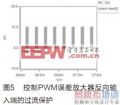 为了有效实现过流后限制输入电流,设计了一种用电流采样信号控制PWM误差放大器反向输入端的过流保护电路,如图3所示。