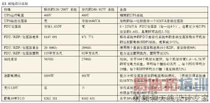 如表1所示,推荐的数据中心240/415V配电系统能使总体拥有成本降低61%,空间节省32%。在所降低的TCO成本中,大约47%来自材料的节省,53%来自能量的节省。此外,推荐的替代设计可以与现有数据中心中的传统配电设计并行运行。