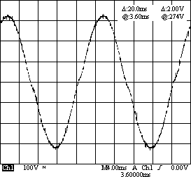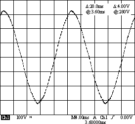 基于上述控制思想,已成功研制出一系列大功率样机。对于10kW的样机,其效率η≥85%,频率精度≤0.1%,输出电压精度≤0.5%,其空载和带负载时的电压波形分别如图7和图8所示。