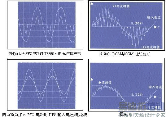 模块UPS导入先进的改良技术,可达到输入总谐波失真(THDl)只有5%,远低于传统UPS可控硅整流器的33%(见图4(a)(b)所示),同时单位输入功因PF=1。图4(a)为无PFC电路时UPS输入电压/电流波形,而图4(b)为加入PFC电路时UPS输入电压/电流波形。在线性负载条件下,输出总谐波失真(THD)低干2%,极大降低电网污染,有效减少电网负荷和电源损耗,整机效率高达96%,大幅节省能源,见图5(a)(b)所示。